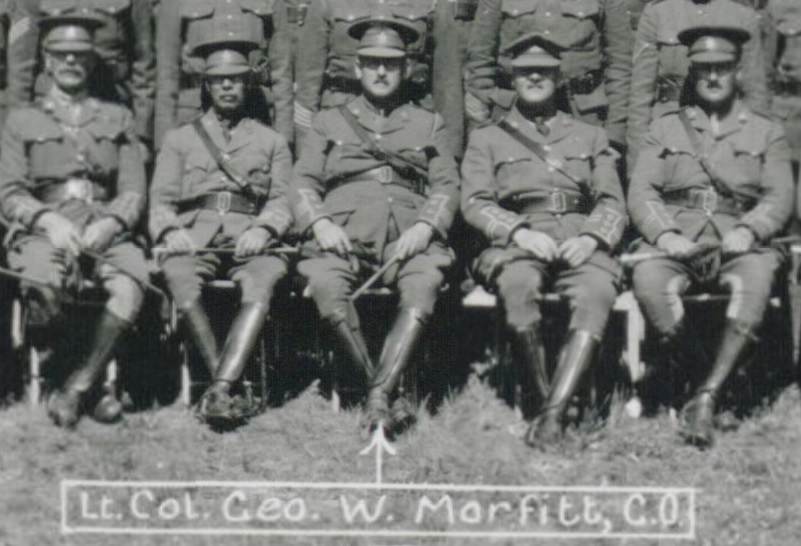 Born on 16 March 1873 in St. Mary’s Ontario, George W Morfitt was a Calgary broker and member of the 103rd Militia Regiment. Before his appointment to command the 137th Battalion in November 1915, he had been a recruiter for the 31st under Arthur Henry Bell and second-in-command of the 82nd. Suspicious of foreign volunteers with Germanic names, the “eagle-eyed” recruiting officer vowed, “I’m not taking any chances—not if I know it. A German who slips into the 82nd will have to get up pretty early in the morning.”