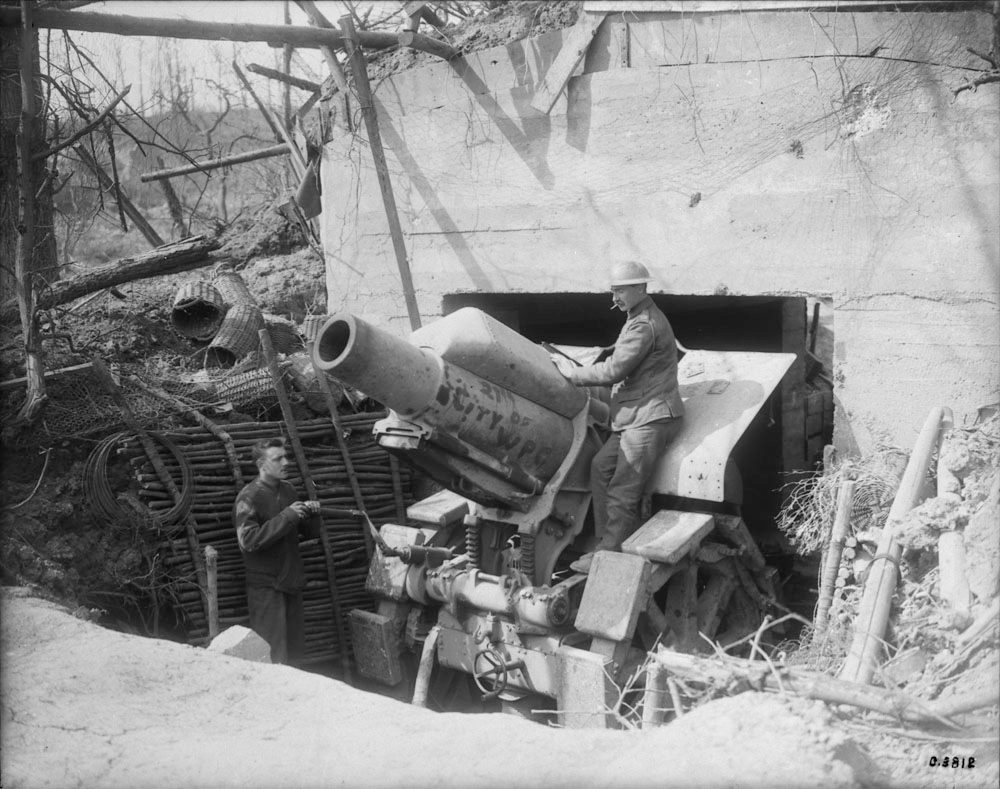 MIKAN 3397850: German 8″ Howitzer captured on Vimy Ridge by 27th Battalion.