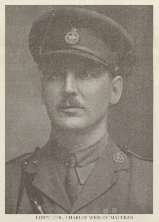 Born in Lachine, Quebec on 18 November 1876, Charles Wesley MacLean was a farmer in Pointe Claire and mayor of Brockville. A member of the 13th Scottish Light Dragoons, he first raised the 2nd Reserve Park, C.A.S.C., which he took to England in May 1915. After returning back to Canada, in February 1916 he was authorized to organize the 207th Battalion from Ottawa-Carleton. A noted athlete, football player, swimmer and champion oarsman before the war, MacLean encouraged sports and competition for the 207th.