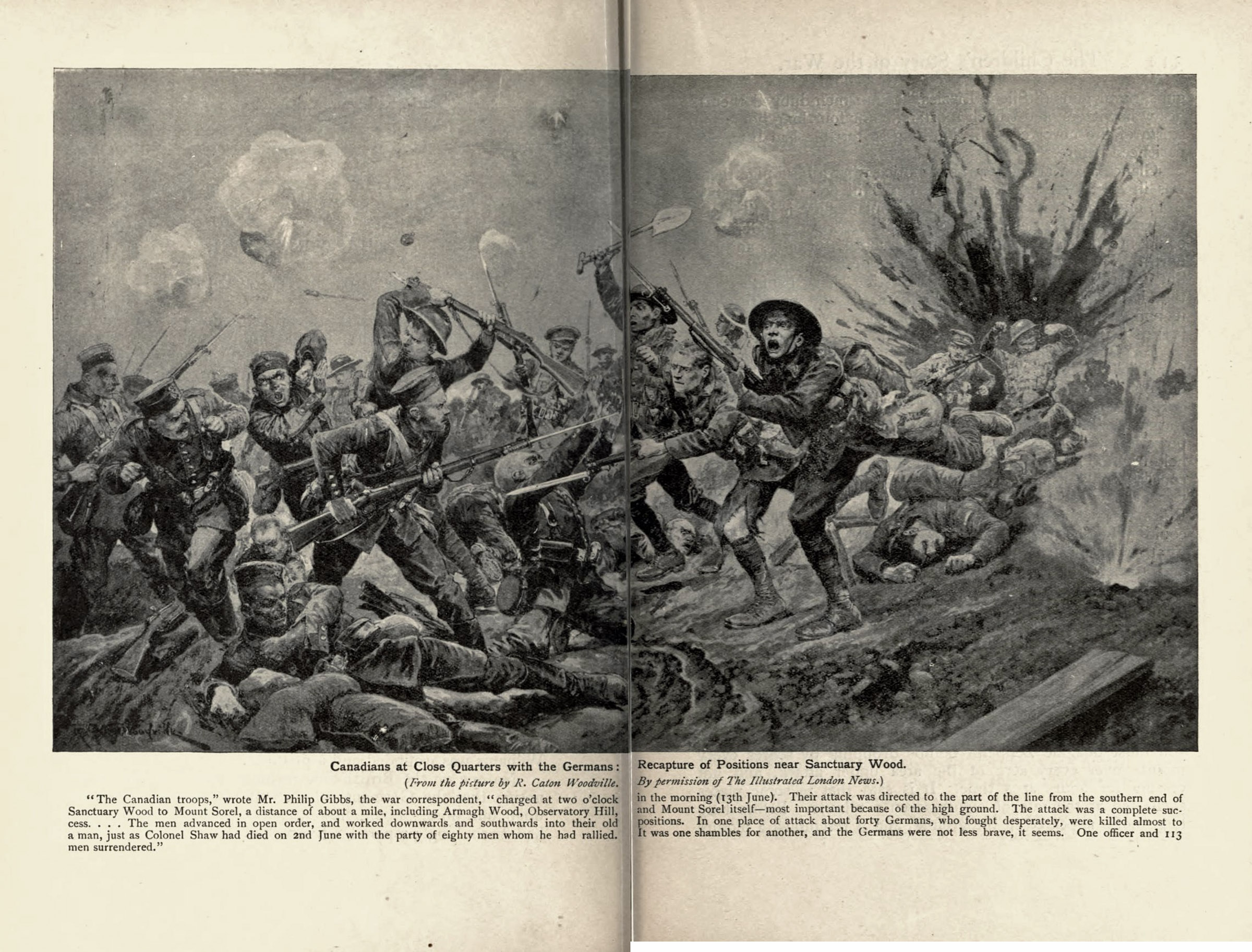 In one place Colonel A. E. Shaw rallied eighty Mounted Rifles amidst a jumble of ruined earthworks, and there the Canadians fought until only a handful remained. Of these, only two managed to reach safety.