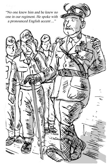 No one knew him and he knew no one in our regiment. He spoke with a pronounced English accent, carried a walking stick, and (a major faux pas) arrived at our unit wearing PPCLI badges and their special type of head dress. When Salmon had arrived, he was dressed as a member of our unit and not wearing the badges of the RCR, which had been his regular unit.